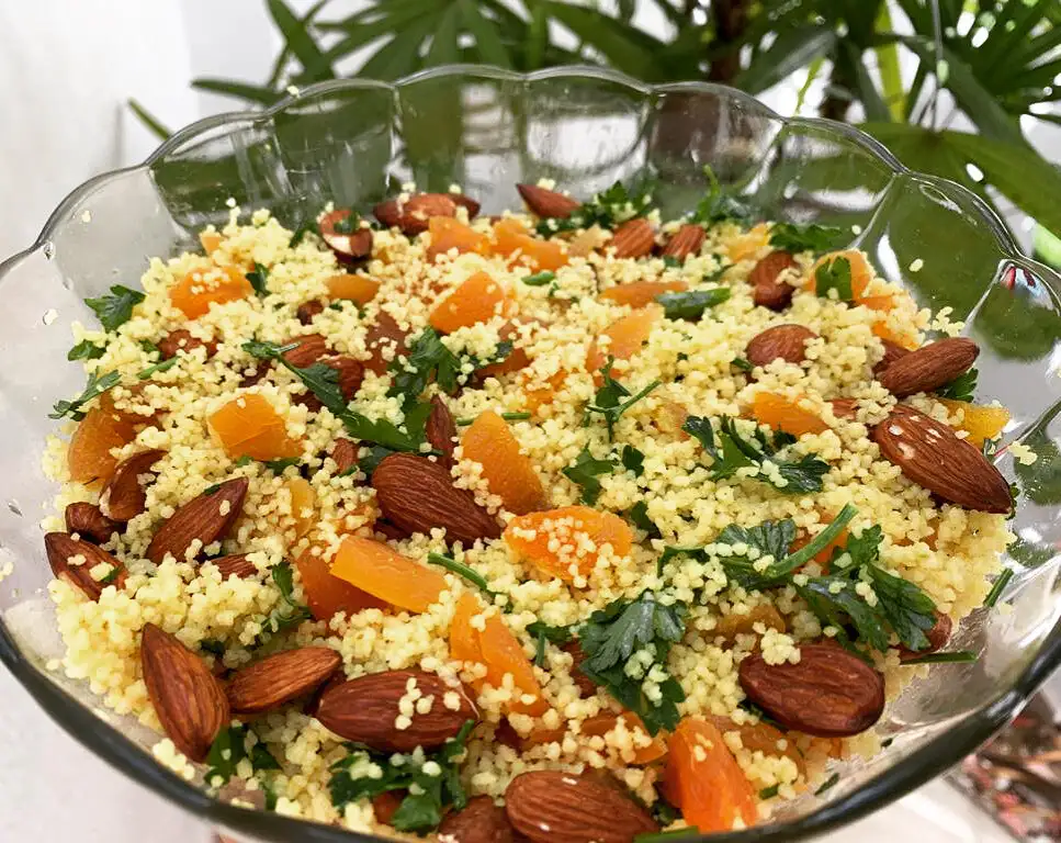 Salada 9: Salada de berinjela com passas e amêndoas: